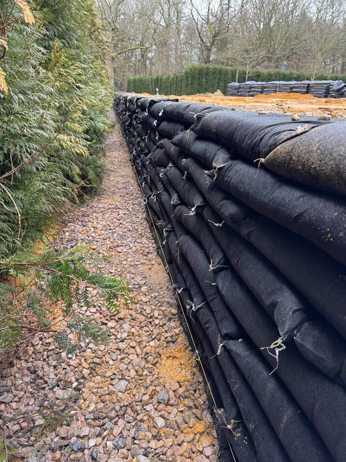 Our ECO-MSE bags, when used with interlocking gripper retaining plates, form solid and stable retaining walls with an efficient and easy installation process. Combining the strength of ECO-MSE principles with innovative geotextile technology, our system ensures durability, resilience, and long-term reliability, conforming to rigorous international testing standards. Additionally, the efficient installation process reduces labour costs by approximately 60% compared to conventional retaining wall systems, minimizing site disruption, keeping projects on schedule, and delivering superior structural performance for civil engineering and landscaping applications.